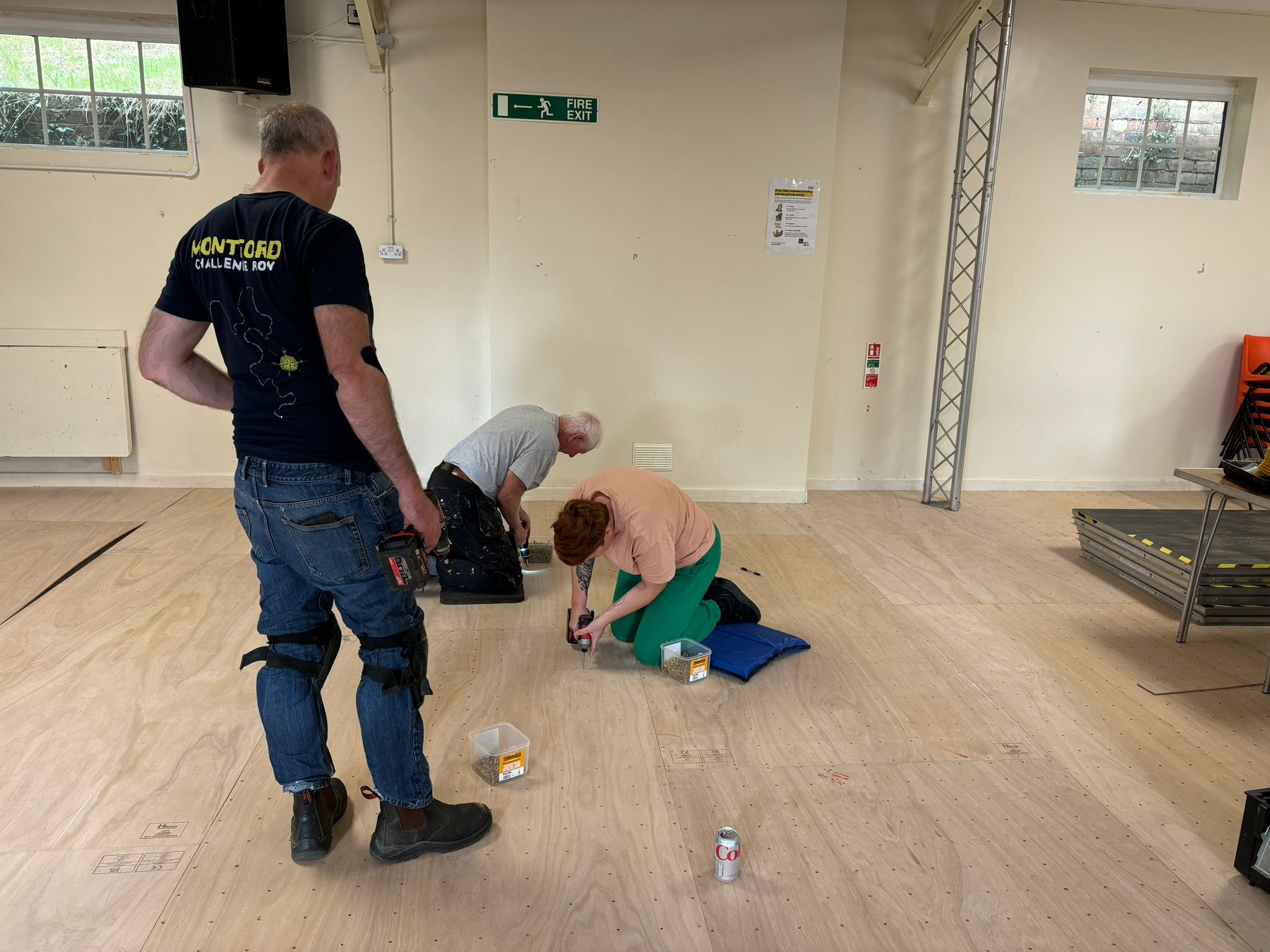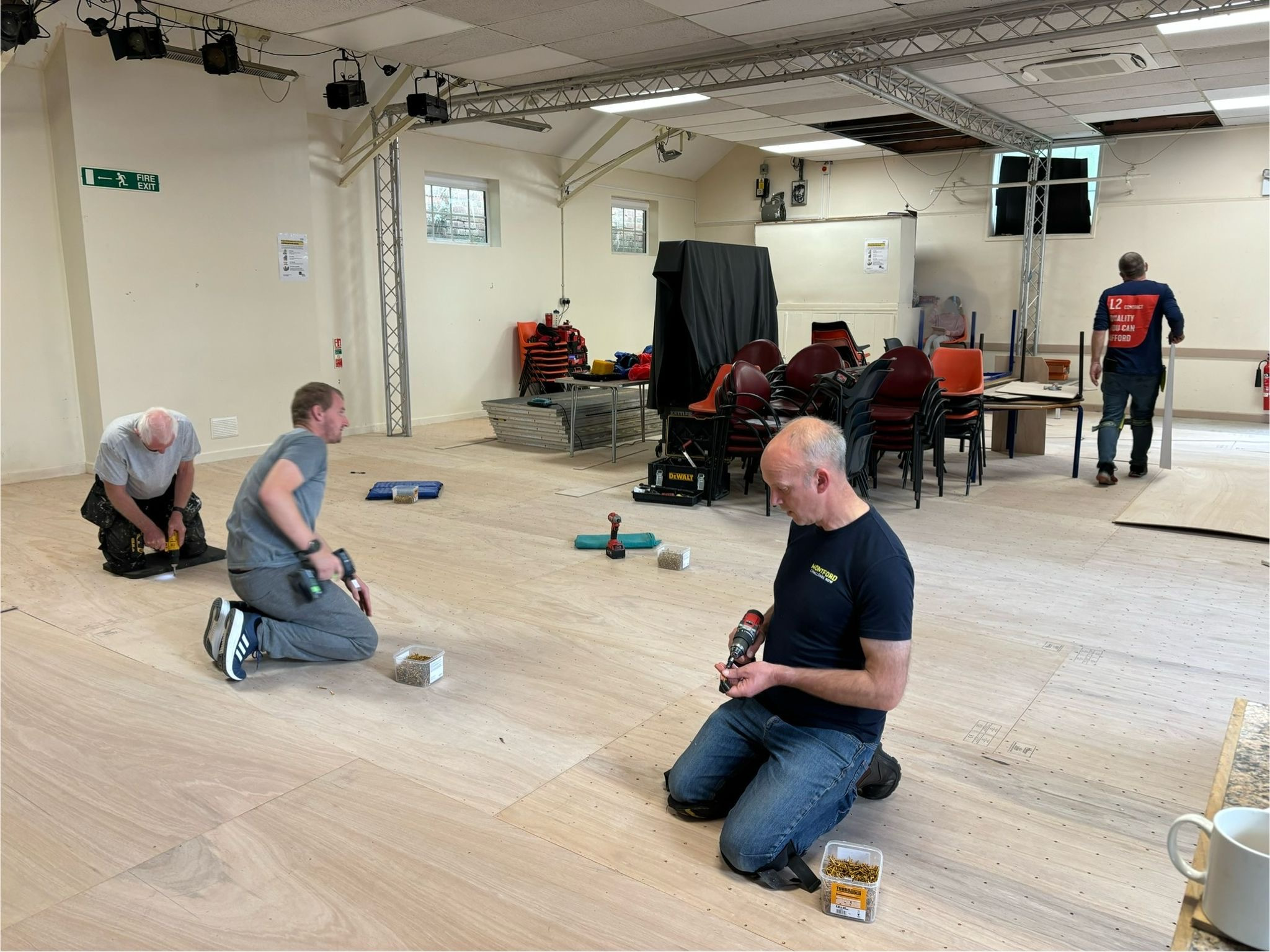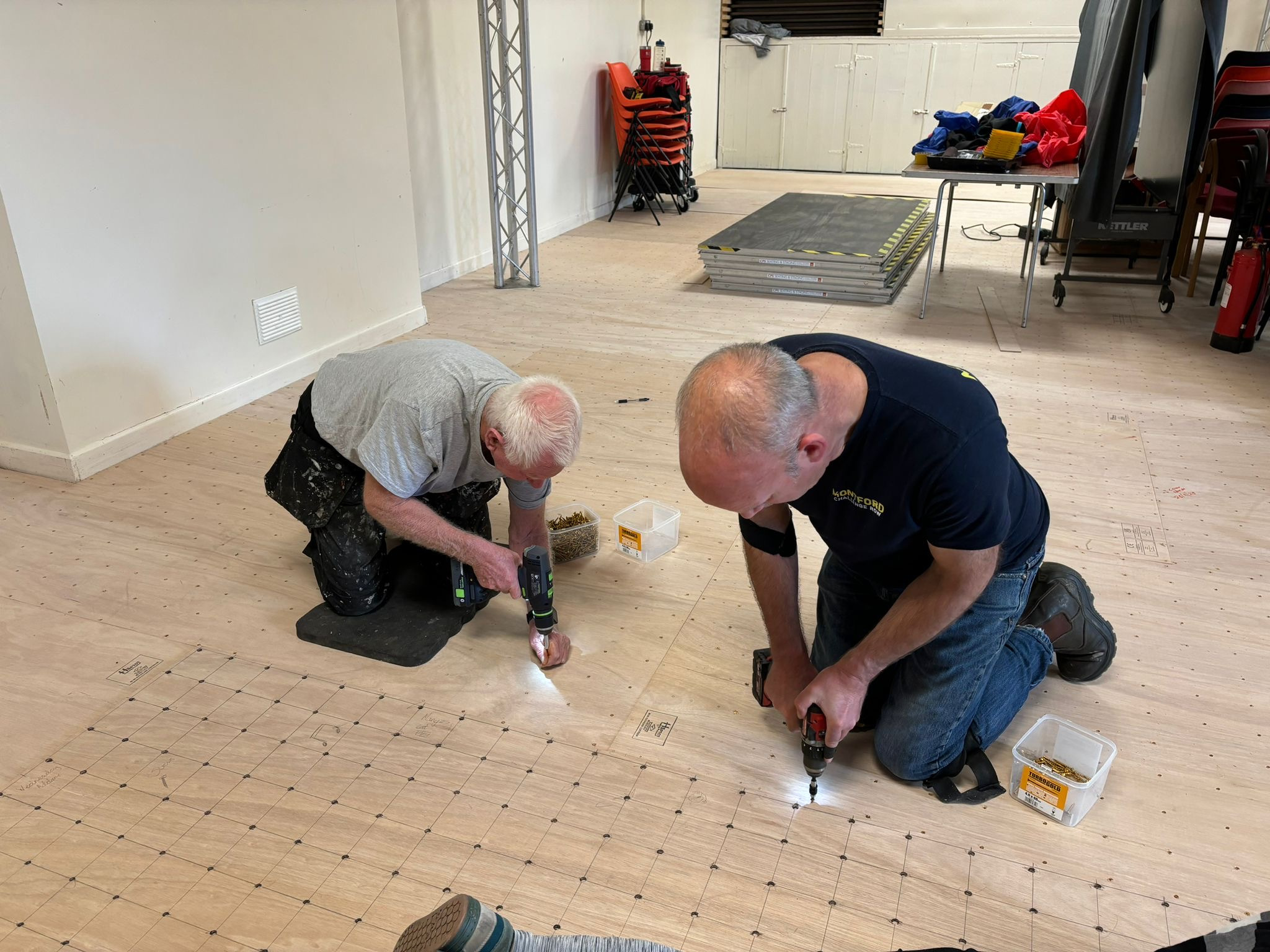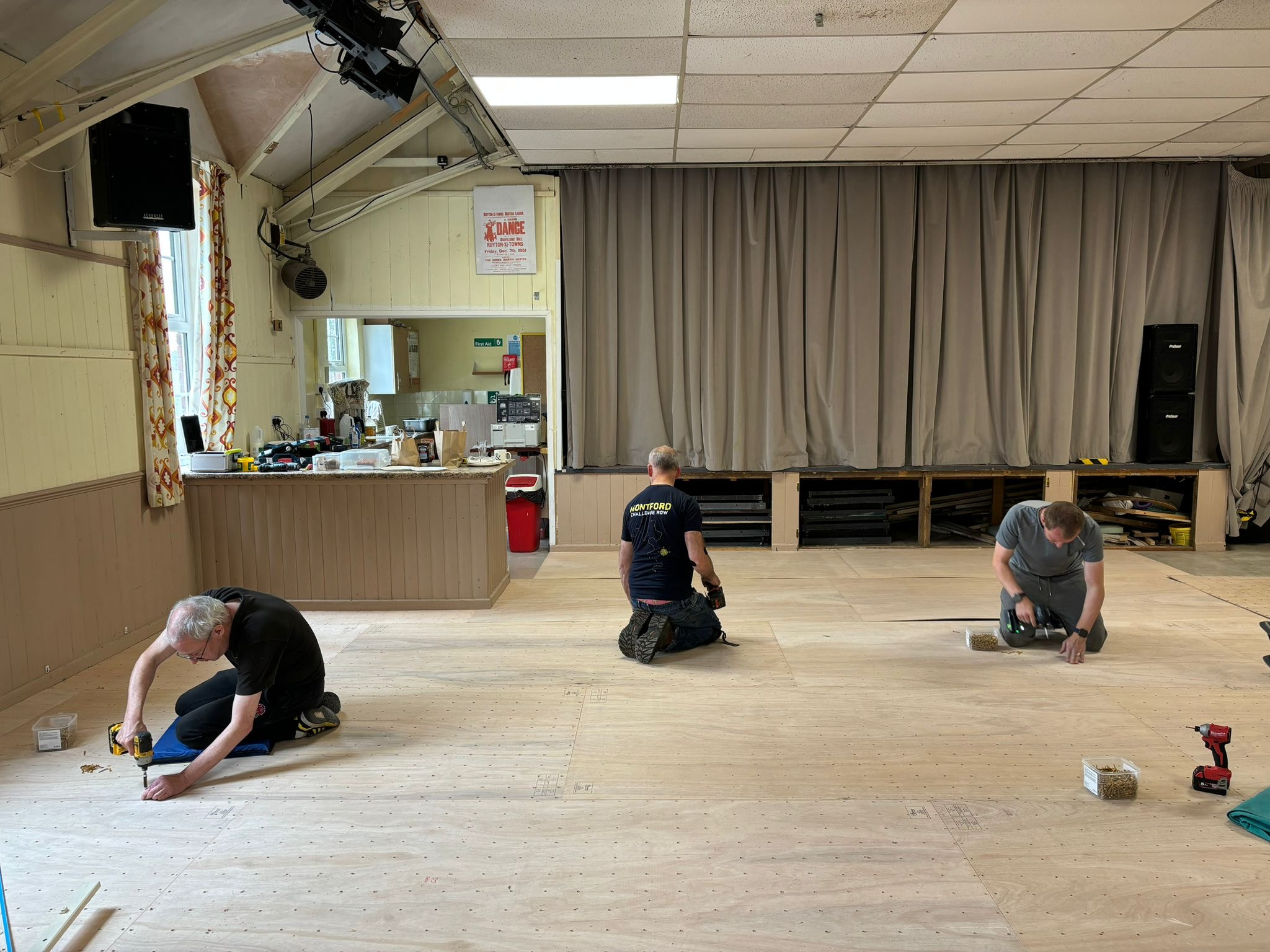 We’ve been floored by the outpouring of help, and really appreciate the time and support received from the villagers, so thank you to all our wonderful volunteers who helped us keep our heads screwed on whilst we nailed down the base for our new village hall floor. It took a whopping 16,000 screws!
